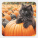 Sticker Carré Halloween Kitten noir sur un Citrouille