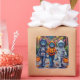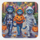 Sticker Carré Halloween Orientale Bleue Chats Trick-or-Treating