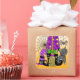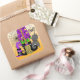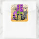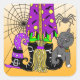 Sticker Carré Halloween Witch, Chat, Araignée et Broomstick