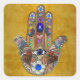 Sticker Carré Hamsa Coeurs Fleurs Opal Art sur Or