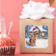 Sticker Carré Hanoverian Scenthound Snowy Forest Cabin Santa Hat