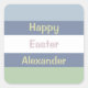 Pâques horizontales bleu clair, vert clair et bleu poussiéreux rayé motif et texte personnalisable : Bonne Pâques. Cliquez sur Modifier pour modifier le texte et le nom à votre goût,