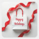 Sticker Carré Happy Holidays Gift Bag With Red Ribbons