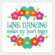 A beautiful way to show how you feel about line dancing. Enjoy this colorful design with fun flowers and a heart and the words - Line Dancing makes my heart happy.