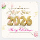 Celebrate the New Year 2026 with this elegant festive design featuring lush green pine branches, holiday ornaments, and beautifully wrapped gifts.