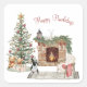 Sticker Carré Happy Pawlidays Chien Design - Boston Terrier