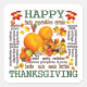 Un autocollant unique et coloré de la fête de l'Action de grâce, avec des citrouilles et d'autres produits de saison et des feuilles d'automne.