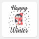 Illustration de mignon pingouin, flocons de neige et texte : Happy Winter.