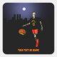 Pas dans le truc ou le traitement d'Halloween ? Et si on jouait à un petit jeu de sauts ? Dispose d'un squelette qui glisse un Jack O'Lantern au rythme d'un ballon de basket. Le squelette porte un t-shirt portant le numéro "7" et le nom de l'équipe "GHOULS". La lune survole au loin un horizon urbain sombre. Customisez en ajoutant votre propre texte.