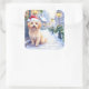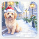 Sticker Carré Havanese Snowy Village Walk Santa Hat Christmas