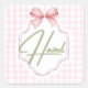 Sticker Carré Hazel personnalisé Baby Girl Nursery Bow&En vichy