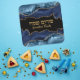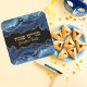 Sticker Carré Hébreu tendance bleu et or Happy Purim