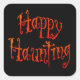 Texte "Happy Haunting" en lettres spectrales orange, avec quelques yeux fantomatiques, un dessin humoristique pour une Halloween obsédante