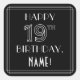Cet élégant autocollant carré style Art déco inspiré des années 2000 a le message "HAPPY 19TH BANTHDAY", ainsi qu'un nom de destinataire personnalisable. Le numéro "19TH" a un style géométrique soigné, et il y a aussi une bordure multi-lignes autour du message de voeux d'anniversaire. De luxueux autocollants sur le thème de l'anniversaire comme ceux-ci pourraient être donnés ou utilisés à une fête pour quelqu'un qui célèbre son dix-neuvième anniversaire, ou peut-être utilisés pour préparer des invitations ou des cadeaux pour un tel événement. [~Z0000646]