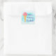 Un autocollant qui dit : Joyeux anniversaire personnalisé avec un nom. Illustré avec une boule de glace rose dans un cône gaufre. Placez-vous sur une plaque d'aquarelle bleu turquoise / brosse.