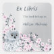 Sticker Carré Hibou et fleurs de cerisier Ex Libris Bookplate