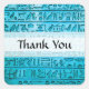 Un ensemble d'autocollants "Merci" bleu carré avec d'anciens hiéroglyphes gravés sur pierre. Les mots "Merci" sont personnalisables !