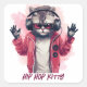 Un chat élégant dans un sweat - shirt à capuche rouge et des écouteurs, projetant ses pattes comme un vrai maître DJ.