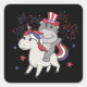 Sticker Carré Hippo Avec Unicorne Pour Le 4 Juillet Feu D'Artifi