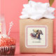 Un autocollant carré présente une illustration de cheval et de jockey et un endroit où vos invités à écrire dans le cheval qu'ils parient gagnera la course. CORRESPONDANCE d'objets dans notre collection.