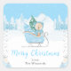 Sticker Carré Hiver Bear Bleu Sleigh Joyeux Noël