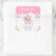 Sticker Carré Hiver Ours rose Baby shower de traîneau Merci