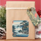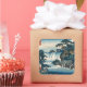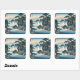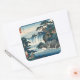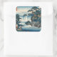 Sticker Carré Hokusai Ukiyo-e Cascade japonaise Paysage bleu