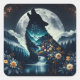Sticker Carré Howling Wolf | Pleine lune Ai Art