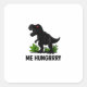 A black T-Rex with glowing red eyes bursts from bright green jungle plants, roaring loud with attitude. The “ME HUNGRRRY!” slogan captures that untamed, prehistoric hunger — bold, funny, and fierce.