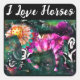 Sticker Carré I Love Horses Abstrait Whimsical Cheval Peinture