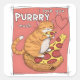 A humorous and vibrant design showcases a tabby cat lounging on a peach-colored blanket while munching on peperoni pizza. The bold white text reads, "I love you purrry much." This playful design is offered on various products, making perfect gifts for cat enthusiasts.