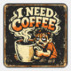 Sticker Carré I Need Coffee – Morning Survival Humor