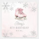Sticker Carré Ice Skating Pink Silver Glitter Snowflake Birthday