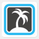 Une icône de palmier avec un arrière - plan noir et un cadre bleu. Cette conception semble vraiment efficace sur ces Stickers