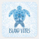 Une tortue de mer stylisée dans les tons bleus présente des silhouettes de palmiers et des oiseaux de mer volants dans sa coquille. Le texte gras sous la tortue dit ISLAND VIBES invoquant une atmosphère de vacances tropicale et détendue. Tags : tortue de mer, palme, soleil, coucher de soleil, tortue, mer, tropicale, reptile, lever du soleil, plage, vacances, croisière, île, paradis, utopie, félicité, vacances, détente, calme, chill, sérénité, îles vibes, vie marine, oiseau, mouette, goéland, arbre, positivité, relaxation, palmiers, caribéen, été, à la retraite, vibes