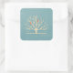 Stickers avec un arrière - plan vert muet superposé est un arbre jaune clair avec 2 silhouettes d'oiseau orange sur les branches.