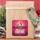 stickers cuisine avec un design graphique de Noël lumineux et festif. Le texte dit Joyeux Noël & Bonne Année. Conçu avec un monticule de cadeaux en forme d'arbre avec des flocons de neige festifs, des étoiles, des baubles de noël et des étincelles à l'air brillant. Aiguilles de pin et illustration en forme d'arbre également inclus dans cette image de vacances. L'arrière - plan est une couleur rose rougeâtre vibrante.