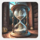 Un tableau numérique d'un sablier fantastique avec un palais à l'intérieur.