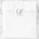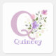 Les autocollants d'identification. Le design présente Monogram & Name avec Fleurs de chaque côté dans un style pastel couleur eau. L'exemple de nom est Quincey. Peut être pour toute personne avec un nom commençant par Q.