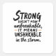 Un design de typographie puissant, avec une citation inspirante sur la résilience et la force réelle. Le message dit : "Forte ne signifie pas indestructible, elle veut dire indestructible dans la tempête." Cette conception célèbre la capacité de rester ferme et inflexible face aux défis de la vie. Parfait pour la motivation, l'amélioration de soi, ou pour toute personne qui a besoin d'un rappel de leur endurance. Il utilise une police de script de brosse tracée à la main et audacieuse sur un arrière - plan simple pour maximiser l'impact.