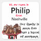 Stick on name badges pour les familles dont les réunions de famille et les rencontres sont plus amusantes qu'un tonneau de singes. Lorsque les gens arrivent, utilisez des marqueurs permanents pour les faire remplir leur nom et leur ville où ils vivent. Ce design amusant présente une photo d'une brouette rouge pleine de bébés orangs-outans (pas un singe à voir dans ce mignon groupe de grands singes.) Votre achat amusant aide également à soutenir le centre de soins où ces orangs-outans orphelins sont élevés et enseigné les compétences de survie dans la jungle. L'artiste est bénévole dans cette installation faunique.