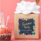Une invitation à une fête d'été, lettrage manuscrit et points et lampions colorés autour