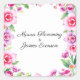 Une invitation de mariage magnifiquement conçue et ornée d'une œuvre d'art floral vibrant. Le design présente des fleurs roses et violettes saisissantes encadrant le texte, créant une apparence élégante et festive. Le texte de l'invitation est écrit dans une combinaison de polices ludiques et classiques, améliorant son aspect invitant et sophistiqué.