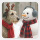 Sticker Carré Irish Wolfhound Gazing at a Cute Snowman