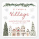 Add a charming touch to your party favors, envelopes, or décor with these It Takes a Village winter baby shower stickers. The design features a cozy watercolor village framed by evergreen trees, snowflakes, and a greenery garland across the top. “It Takes a Village” is displayed in festive red script above customizable text for the mom-to-be’s name and shower date. Perfect for winter or Christmas baby showers, these stickers bring warmth, coordination, and seasonal charm to every detail of your celebration.