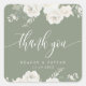 Sticker Carré Ivoire et Sauge Élégant Remerciement de Mariage Fl