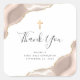 Cet autocollant First Communion présente des motifs d'aquarelle en ivoire taillés avec de la parties scintillant en faux or dans deux coins. Une fausse croix de feuille d'or apparaît au-dessus des mots "Merci" dans le script d'écriture manuscrite gris charbon sur un arrière - plan blanc. Personnalisez-le avec le nom de l'invité d'honneur, l'occasion et la date dans la fonte grise fusain.