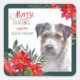 Sticker Carré Jack Russell Terrier Poinsettia frontière Noël
