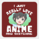 STICKER CARRÉ J'ADORE VRAIMENT L'ANIME ET LE SQUETCHING