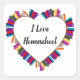 Sticker Carré J'aime l'école à la maison, l'école à la maison en